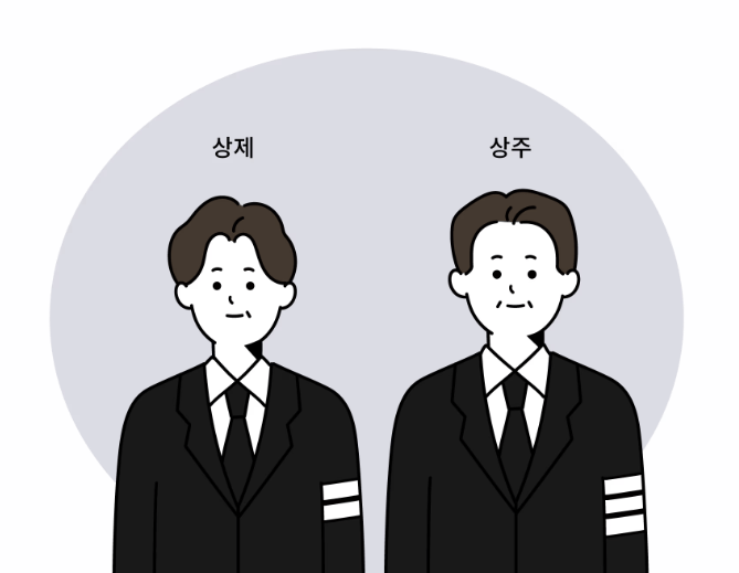상주와 상제는 완장을 통해 쉽게 구분하실 수 있습니다. 상주는 두 줄이 있는 완장을 차며, 상제들은 한 줄 완장을 차게 됩니다. 간혹 상주가 세 줄 완장을 차고 다른 아들들이 두 줄 완장을 차는 경우도 있습니다.